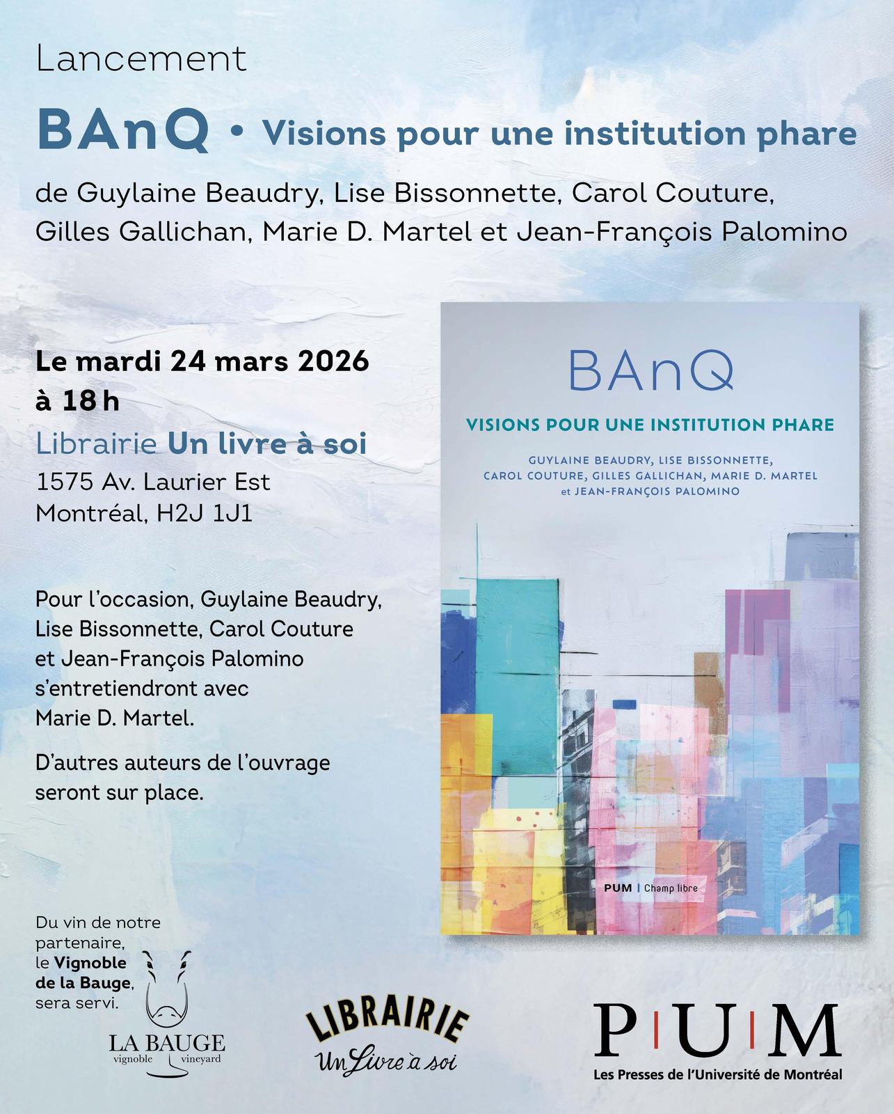 Lancement du livre BAnQ: visions pour une insitution phare à la librairie Un livre à soi