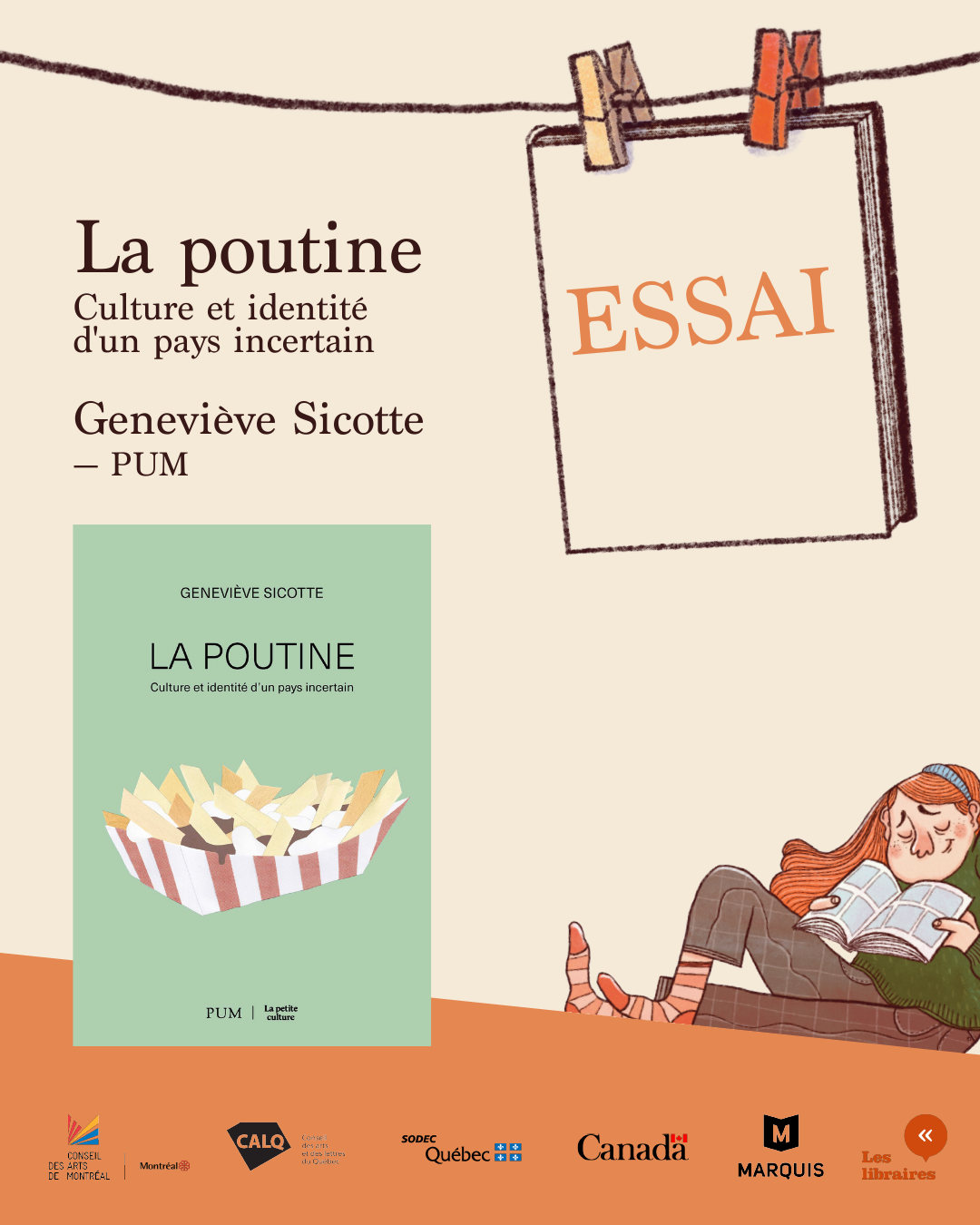 Le livre La poutine: culture et identité d’un pays incertain, de Geneviève Sicotte, est sur la liste préliminaire des Prix des libraires du Québec 2026, dans la catégorie Essai.